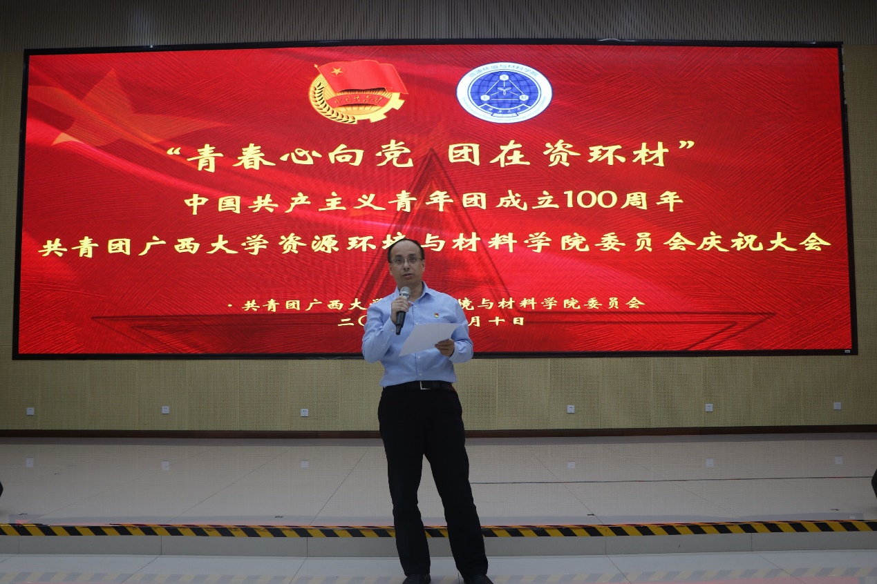 在123报告厅举办建团百年庆祝大会。学院党委书记沈大强,党委副书记吴达慧,团委副书记王馨蔚,团委委员何奕阳、田春以及各位获奖代表出席本次大会。