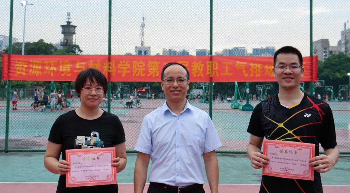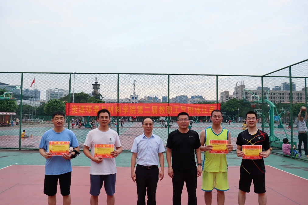 冠军争夺赛上,双方实力相当,比分胶着,队员们身姿矫健、配合默契,不断上演精准发球、灵巧垫球、飞身救球、跃身扣球,奉献了一场扣人心弦又精彩刺激的比赛,观众的掌声和欢呼声让比赛气氛不断升温。经过三局激烈比拼,环境科学与工程系以2:1战胜对手获得冠军,实验院聘联队、材料加工工程系、矿物资源系分获亚军、季军、第四名,材料物理与化学系获得精神文明奖。同时,根据场上表现,马大朝、何奥平两位老师荣获最佳队员;张超兰、李晓泉、陈晔、谭海文、李青、许征兵、蒋奥克、何欢、何春林、石绍宏、陈家彬、周开文获得气排球比赛积极分子称号。