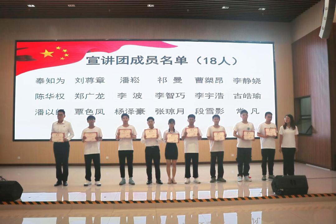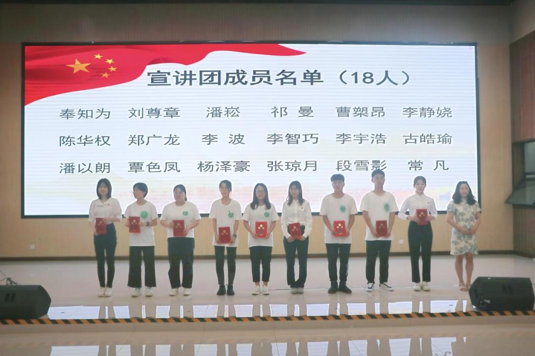 何奕阳老师为第一届“薪火”理论宣讲团成员颁发聘书