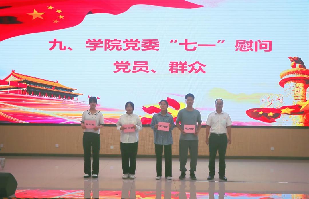 接着,院党委副书记吴达慧老师带领大家进入新党员入党宣誓暨老党员重温入党誓词环节。在田春老师和何奕阳老师给第一届“薪火”理论宣讲团成员颁发聘书后,大会进入表彰和慰问阶段。院团委副书记王馨蔚为第一届“薪火”理论宣讲团先进个人颁发荣誉证书,院党委副书记吴达慧为2022年上半年“学习强国”学习使用先进个人颁发荣誉证书,院党委书记沈大强代表学院党委对困难党员、群众开展“七一”慰问。