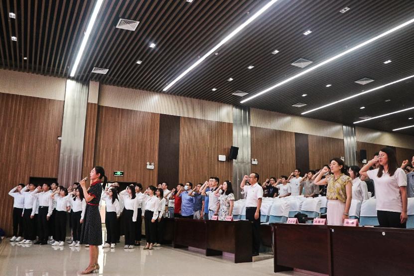 随后,新党员代表裴金格进行发言,她代表全体新发展党员向党组织表明三点决心:第一,党员同志们要努力掌握党史教育知识,努力成为新时代党史故事的继承者和弘扬者;第二,党员同志们要勤奋学习,增长本领,积极发挥带头作用;第三,党员同志们要不忘初心,奋力前行,为实现中华民族伟大复兴而奋斗终身。