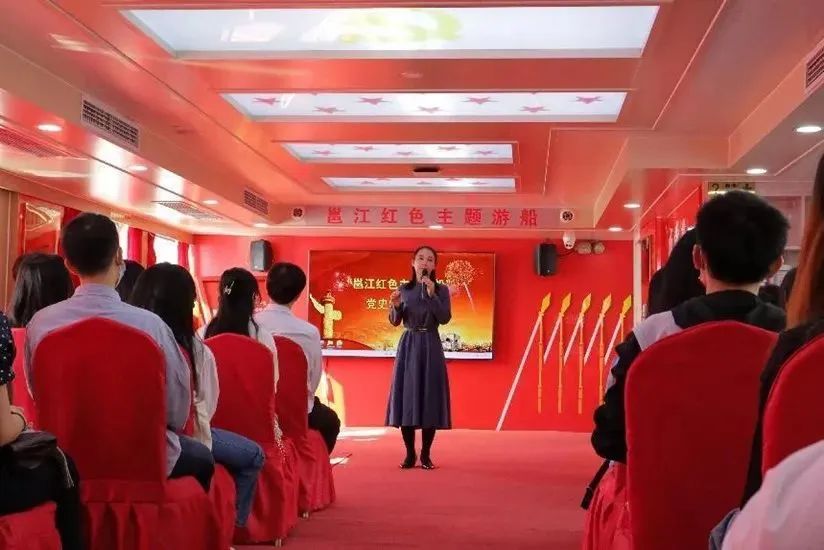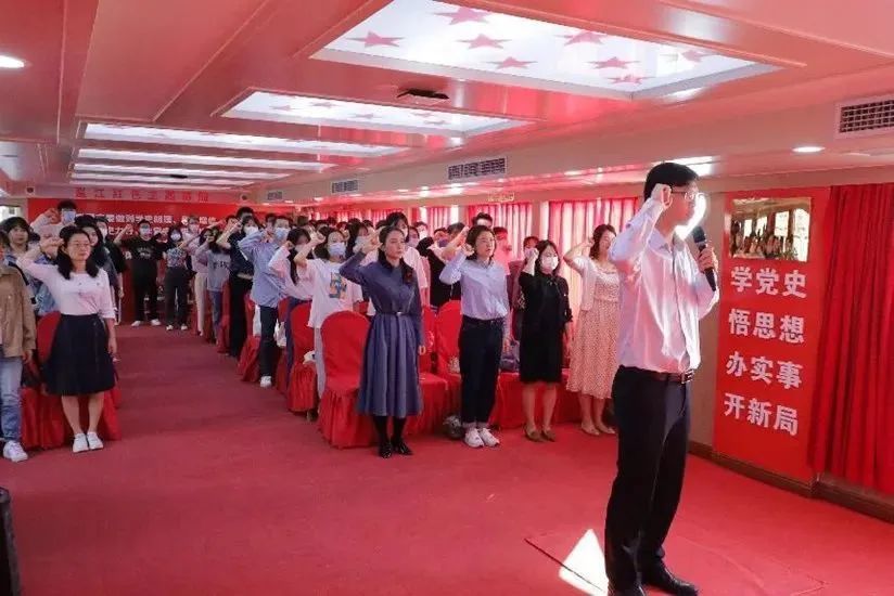 最后,党员们回到游船的第一层船舱进行“邕江红色主题游船”的主题党史教育。党员们热情高涨,积极参与红色家书朗诵、党史知识问答、《小兵张嘎》《闪闪的红星》红色影视剧配音、《没有共产党就没有新中国》《我和我的祖国》红色歌曲大家唱等活动,从中感受红色情怀,汲取青春奋进力量,进一步筑牢师生党员们听党话、感党恩、跟党走的理想信念。