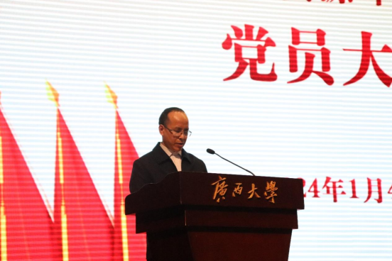 报告号召全院师生要以党的二十大精神、习近平新时代中国特色社会主义思想为指导,紧密团结在以习近平同志为核心的党中央周围,始终坚持着眼于全局、未来和发展,按照学校顶层设计要求,团结带领全院师生缪力奋进、攻坚克难,重实效、强实干、抓落实,以坚定的决心和意志朝着目标不懈努力,牢牢扎根八桂大地,奋力创建高质量特色发展的一流研究型学院,助力学校“双一流”建设和壮美广西的西大篇章谱写,努力创造出无愧于党和人民的新佳绩。