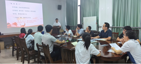会上,高伟老师围绕“事、理、德、人”分享了木与人类文明-课程思政实施心得;阐述了“事”要清晰,把知识和说理有机结合;“理”要鲜明,富有哲理,不能停留在一般性的感悟;“德”要正,要把握正确的方向;“人”要感动、激动,最终转化为行动。