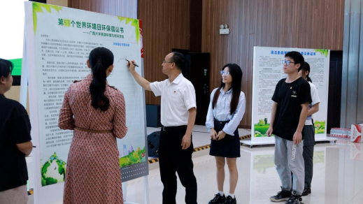 6月5日上午,学院团委书记陈宏带队师生参加2024年六五环境日“全面推进美丽中国建设”南宁主场系列活动——“守护碧水清流,共建美丽南宁”南宁市水塘江综合整治成效主题宣传活动。