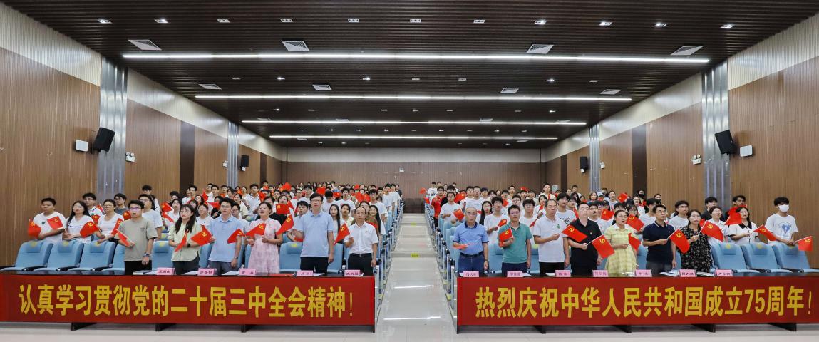 党委组织开展“金色年华·党在资环材”系列活动之“学党的二十届三中全会精神,迎新中国七十五周年国庆”主题党日活动。学院党委书记沈大强,党委副书记、常务副院长冯庆革,副院长罗能能、孙翔出席活动,学院各党支部师生党员代表参加活动。