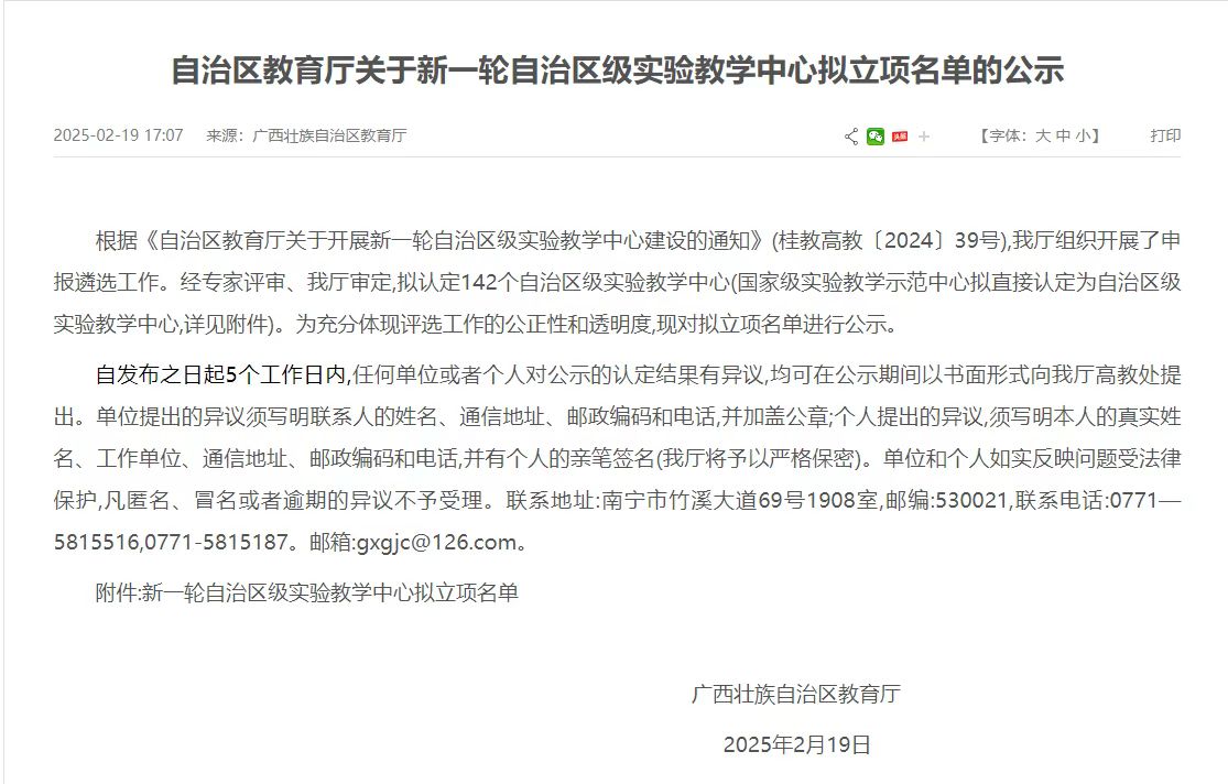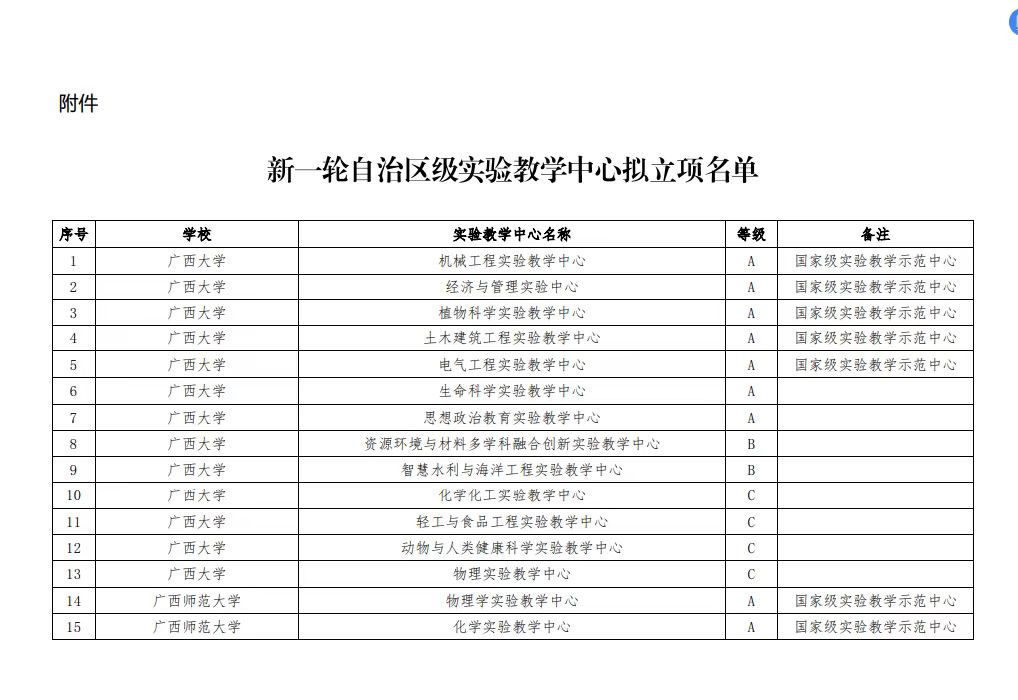 根据《自治区教育厅关于开展新一轮自治区级实验教学中心建设的通知》(桂教高教[2024]39号),区教育厅组织开展了申报遴选工作,经专家评审,区教育厅审定,色情
