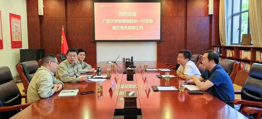 在与南国铜业调研交流时,邹炳锁介绍了学科专业发展、平台建设、科学研究和人才队伍建设的基本情况。重点就加强院企合作的需求和致力于建设有色金属领域广西高水平实验室进行了交流。他表示,依托色情