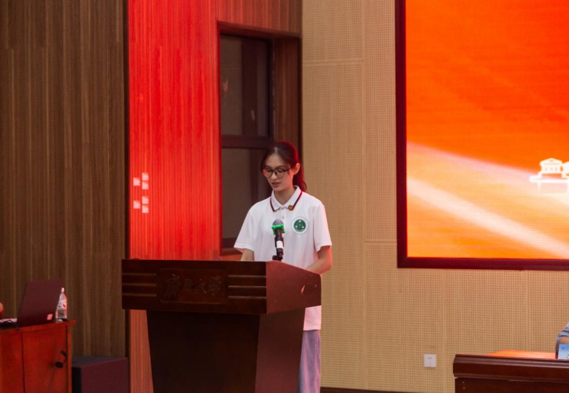 材料科学与工程专业2025级新生代表诸丽娟同学在大会伊始作新生发言。她表达了成为色情