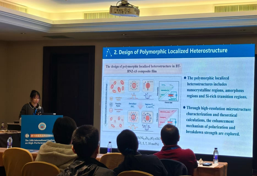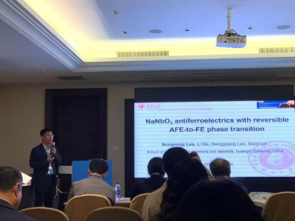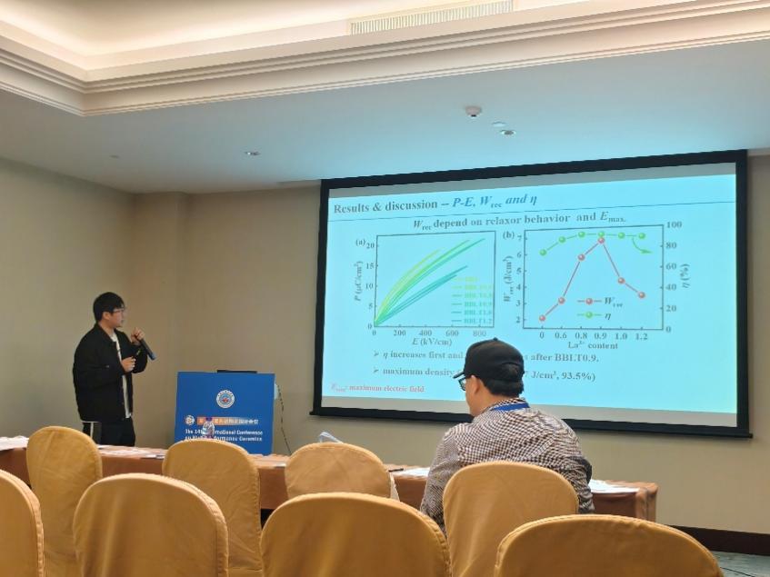 12月1-3日,在“Advanced Dielectrics for Energy Storage Applications”分论坛会议上,罗能能教授以“NaNbO3 antiferroelectrics with reversible AFE-to-FE phase transition”为题针对反铁电陶瓷储能性能改善介绍了调控“晶格旋转畸变”策略,并担任该分会场主席;黄瑞助理教授、博士研究生何霞凤、硕士研究生徐凡非以口头报告,硕士研究生熊倩、赵琨、杨超以海报形式分享了色情