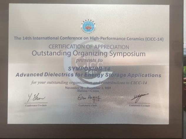 在功能陶瓷领域最新的学术研究成果。硕士研究生熊倩、赵琨还作为志愿者参与了会议的组织。会场互动踊跃,提问不断,呈现出活跃的学术对话与思想碰撞。该分会获得大会“Outsanding Organizing Symposium”奖。