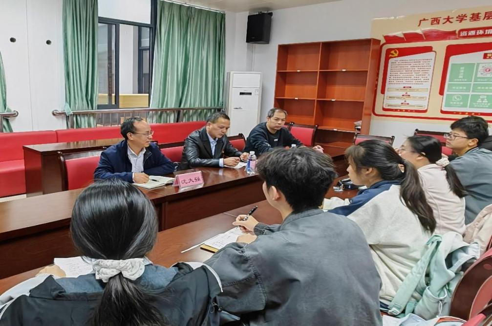 2003届选调生校友、现任桂林市灵川县科学技术协会党组书记、主席曾兵重返母校,与君武青苗“育苗班”学员展开深入交流,院党委书记沈大强主持。