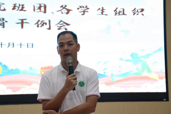 会议伊始,陈宏老师就学院迎新晚会、第二届院运会、团员和青年主题教育活动等工作进行详细说明与布置。他表示,迎新晚会的第一次节目审核要重点关注内容主题,确保节目符合时代潮流且具有显著意义。他强调,学院运动会、主题团日活动和班会是展示个人风貌和增强班级凝聚力的重要契机,班级负责人要广泛宣传动员,组织策划形式多样的活动,吸引同学们积极参与。