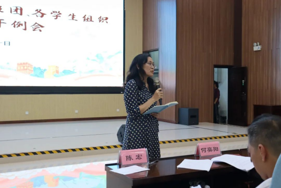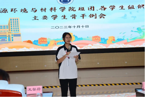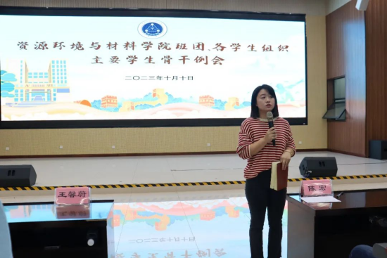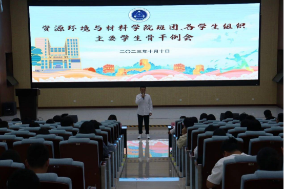 在123报告厅召开2023年秋季学期第二次主要学生骨干例会。学院团委书记陈宏老师、团委副书记王馨蔚和何奕阳老师以及学工组李青老师、韦长喜老师出席会议。院团委各学生组织主要学生干部以及各班班长、团支书参加了本次会议。