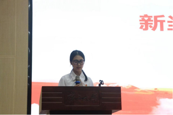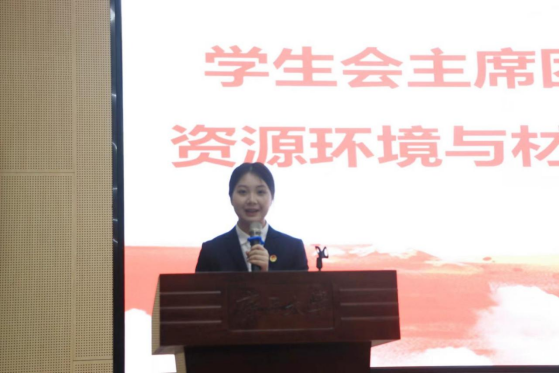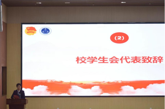 第六届学生会主席团成员,罗蝶向全体与会代表宣读了新一届学生会倡议书。