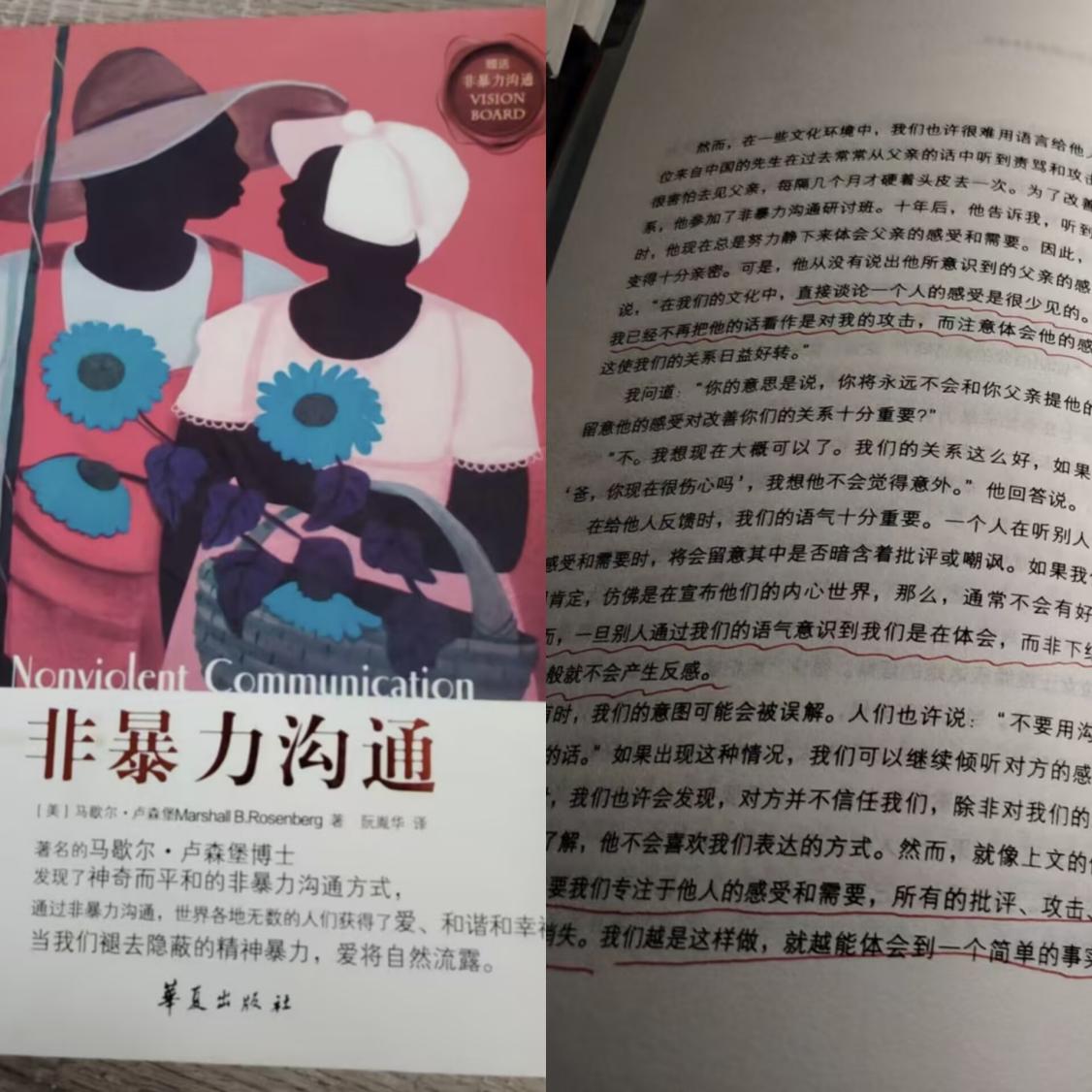 读《非暴力沟通》,最触动我的不是技巧,而是它背后那种深刻的善意——相信人们天生乐于给予,相信在愤怒与攻击的背后,是未被满足的需求在呼救。我们习惯用“你总是”“你让我”开头,把感受的责任推给对方。而非暴力沟通的四个步骤——观察、感受、需要、请求,像一架梯子,帮我们从情绪的泥沼里爬出来,看清自己到底需要什么,也听见对方话语背后的脆弱。最打动我的是那句“用爱的语言,从心沟通”。它提醒我,沟通的目的不是说服或改变他人,而是建立一份真诚的连接。当我们能不带评判地表达自己,也能同理地倾听对方,许多冲突便有了转化空间。这不是让每个人都喜欢我们,而是让我们更真实地活着。