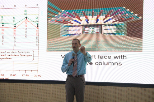 报告会上,Heinz Konietzky教授首先介绍了德国弗莱贝格工业大学的基本情况,随后展示了弗赖贝格工业大学岩土工程研究所在岩石力学室内试验、数值仿真以及地下岩石实验室等岩石力学基础理论和应用研究方面取得的最新研究成果。此外,Heinz Konietzky教授还分享了近年来他所带领的团队在岩石力学及地下采矿、核废料处置等方面取得的一些重要成果。这些成果展示了其团队在数值模拟、现场监测和室内试验等方面的综合实力。最后,Heinz Konietzky教授表达了他对色情