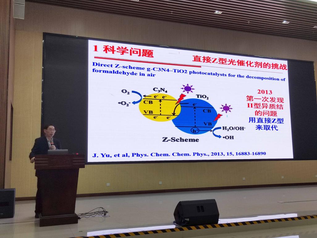 余家国教授从光催化剂的光生载流子的分离与复合基本过程原理出发,引出构筑异质结光催化剂的重要性和意义,从热力学和动力学角度分析II型异质结和Z型异质结异质界面电荷传输路径存在的关键科学问题,提出了梯型(S-scheme)异质结,并详细介绍其电荷转移机制以及电荷转移机理的表征方法,包括原位光照XPS、飞秒瞬态吸收光谱、开尔文探针力显微镜等,从光催化剂在污染物降解、CO2还原等方面的表征结果进行详细讲解。余教授以深入浅出的讲解方式让复杂的科学问题变得易于理解,报告内容丰富、重点突出。