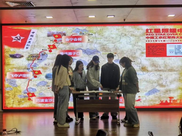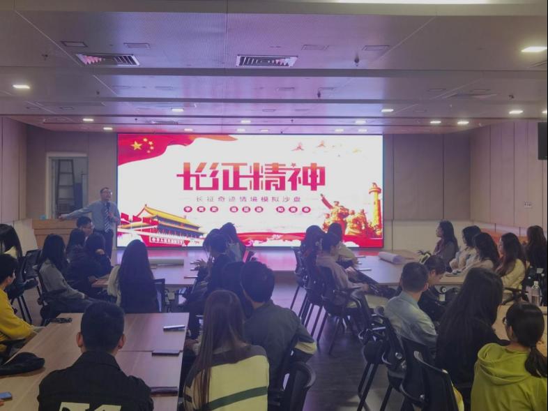 党委在大学生活动中心310报告厅开展“弘扬长征精神,赓续红色血脉”主题党日活动。学院团委书记陈宏、团委委员田春、学工组辅导员罗盛柳老师出席活动,国际注册沙盘演练师杨俊杰老师主持活动。