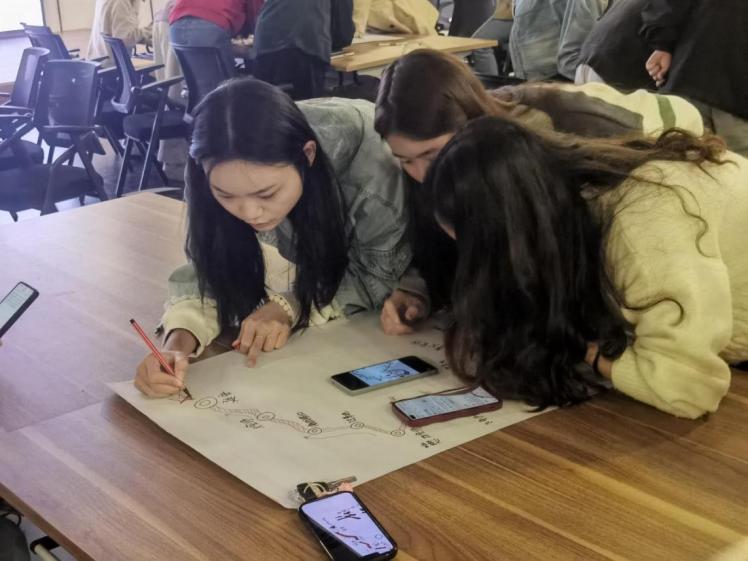 党员同志现场绘制长征行进路线图