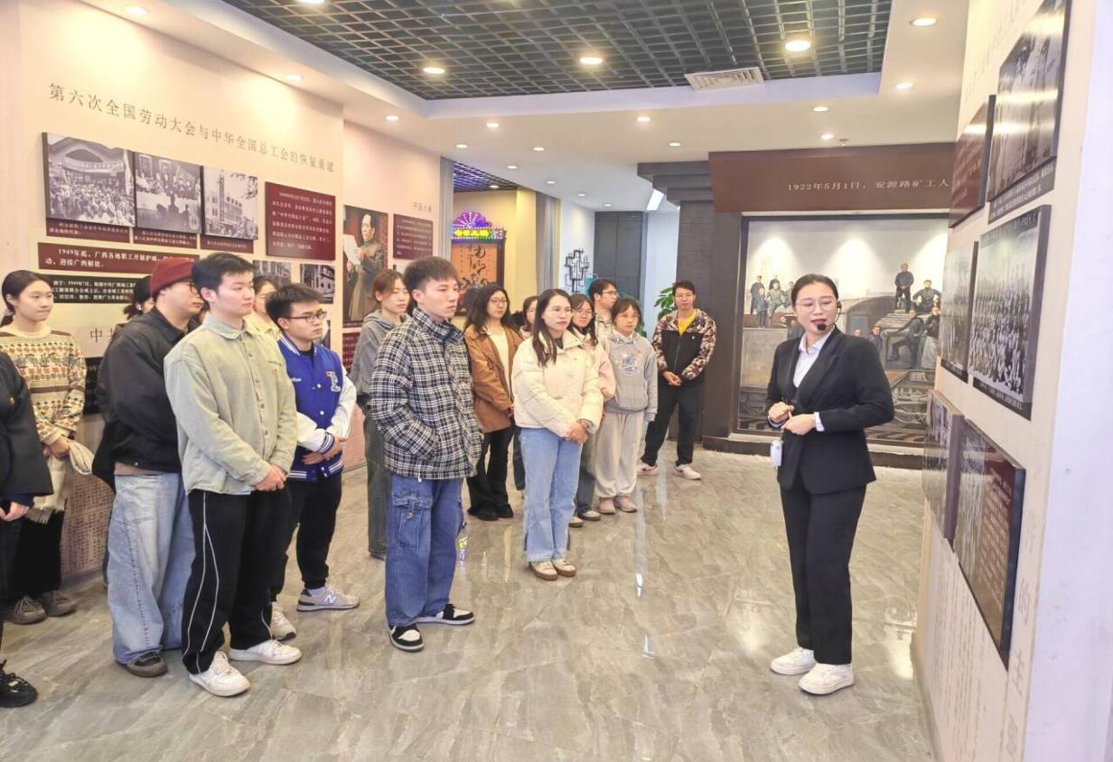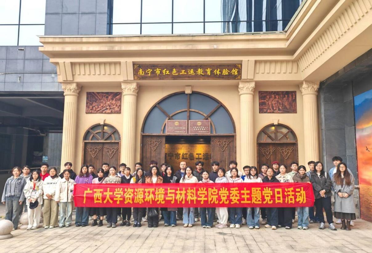 党委在南宁市红色工运教育体验馆开展“金色年华·党在资环材”系列活动之“工运铸魂凝众志,红潮励志润民心”主题党日活动。本次活动由材科本科生第三党支部书记、学工组辅导员卢小燕老师带队,各学生党支部党员代表参加。